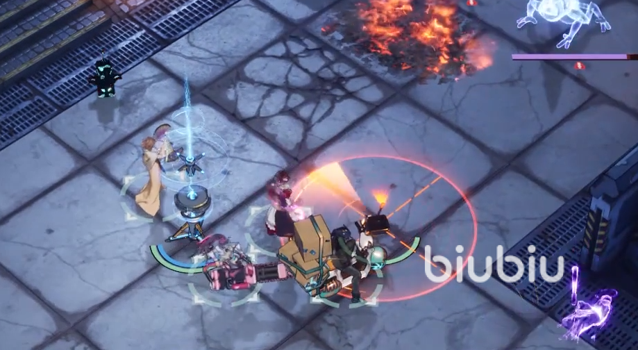 之后是他的第一个小技能,他的第一个小技能发动后可以召唤一个小型炮台,小型炮台会自动攻击附近的敌人,这个小型炮台拥有很多种形态,不同形态的效果都不一样,不过在场的时间和继承本体的属性都是一样的,在场的持续时间为三秒,继承属性为本体的百分之30。