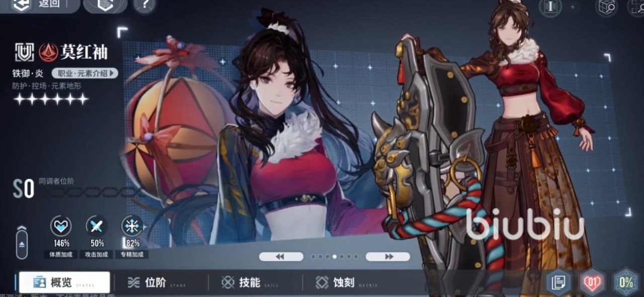 莫红袖的特性使其更容易成为敌人攻击的目标,这一点倒是很好的体现了防护型角色的定位,并且对炎元素伤害有一定免疫,每次受到该元素伤害能回复2%的最大生命。