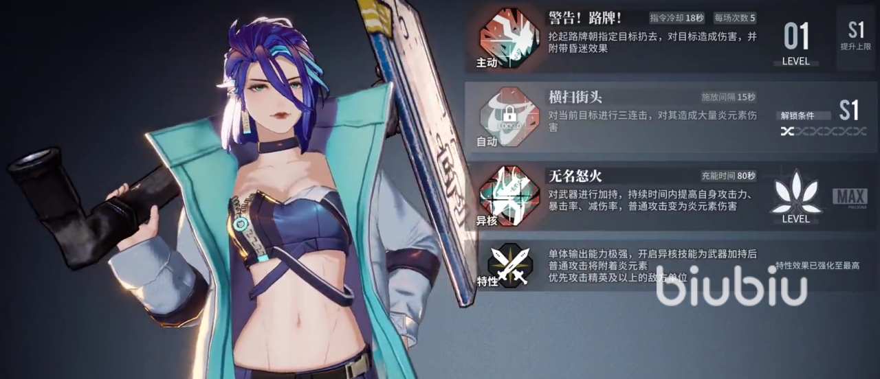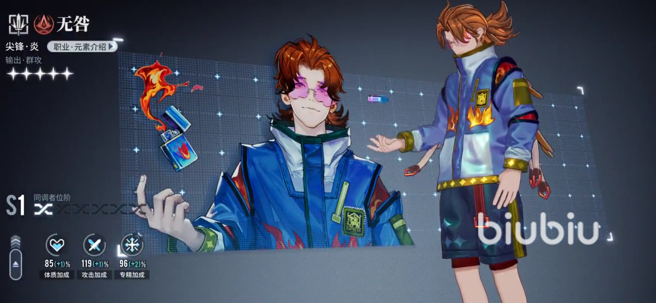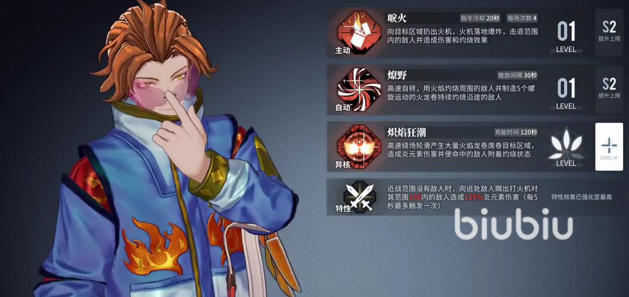 唯一一个四星级别的尖峰角色,属性为炎属性。是上面那位的下位替代,其输出和爆发能力都相当不错。但是相比于上面那位有着范围性伤害,该角色的整体单体输出能力则更为突出。所有的技能都是针对于单体输出能力的加强,能有效的对抗敌人的精英敌人和特定角色。