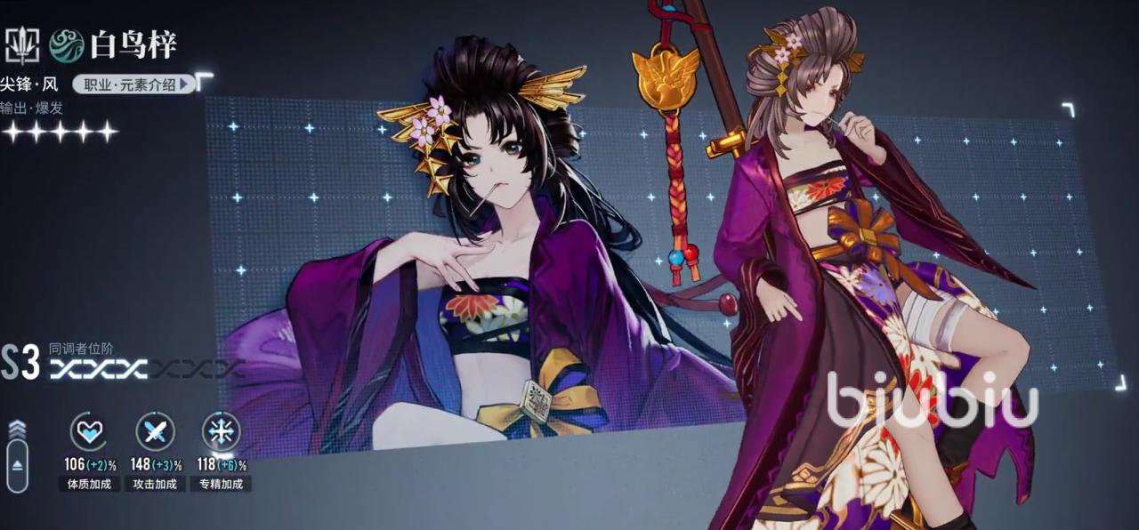 首先便是我们不少玩家较为熟悉的白鸟,作为后期原创角色,官方对角色的设定以及技能设计方面下了不少功夫,可以说是风系输出和爆发的代表。作为尖峰职业最具特色的角色,其单点爆发伤害能力相当高,且附带有对单攻击和对群攻击,多重技能方面的伤害加成,在输出方面无可挑剔。