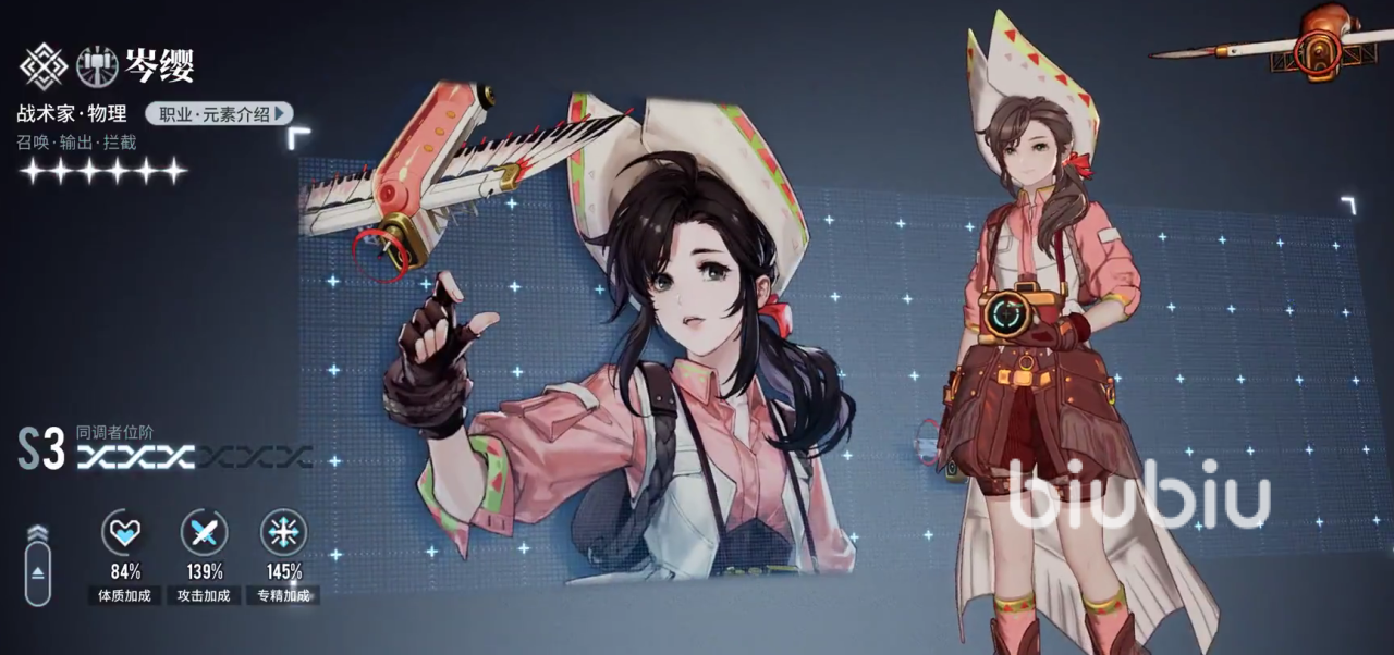 游戏中优秀的辅助以及输出类角色,是一个卓越的战术家,物理属性类型伤害的角色。其技能角色定位涵盖了召唤物,屏障,支援辅助等所有可以提供战场收益的额外加成。无论是对敌人造成群攻输出,亦或者是帮助队友战时性防御和队友伤害提升,都有着很不错的作用。