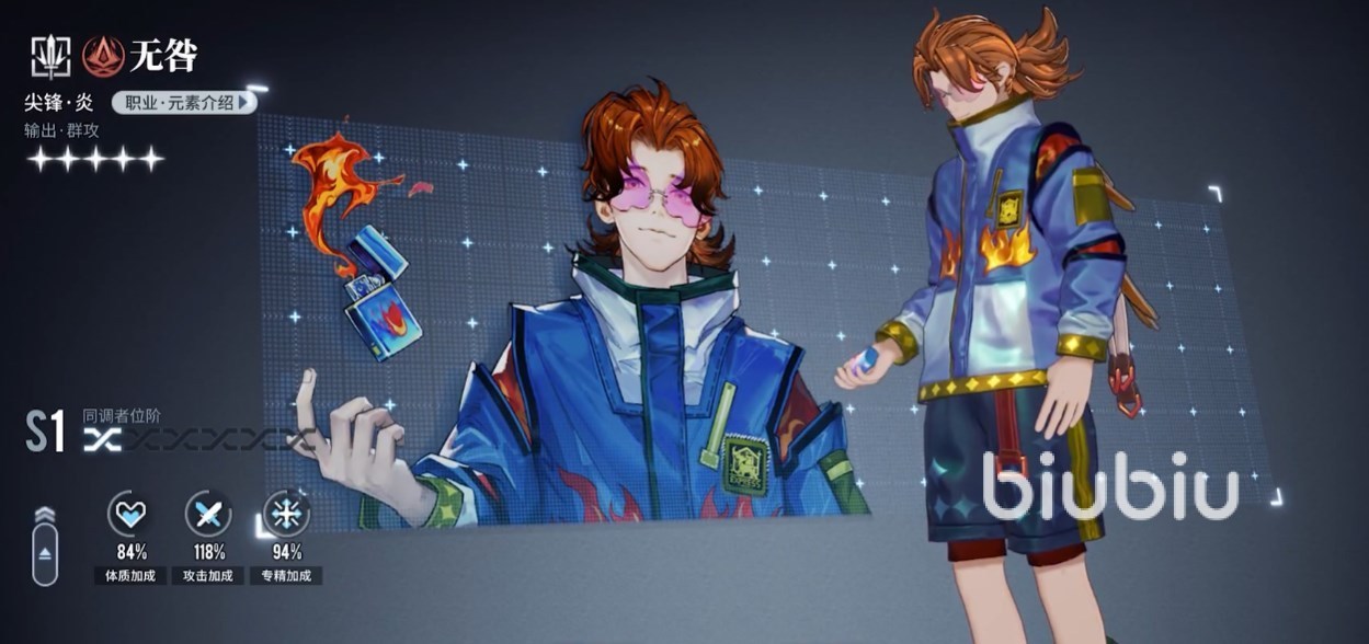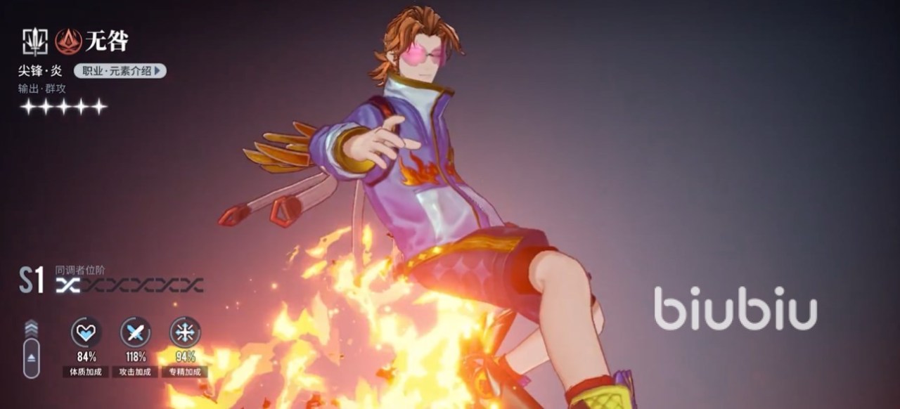 无咎属于尖峰这一职业,有着不俗的群体输出,人物特性是在周围没有敌人的时候对远处目标及其周围小范围内敌人造成炎元素伤害,攻击有灼烧状态的敌人会有额外的暴击加成。释放任何技能都可以得到减伤盾,同时提供基础攻速加成。