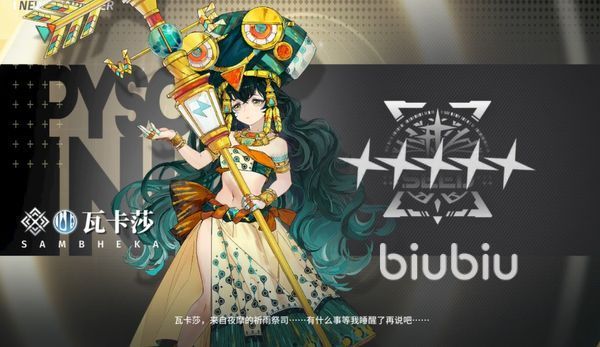 瓦卡莎:她的服装方面看起来更像是一个异域民族的少女,暗蓝色的长发散在腰间,忧郁的眼神看着远方,她在游戏中是一个五星的战术家,属性为水,在战斗中主要负责强化,击退以及元素地形的效果,一般在队伍中是作为辅助来使用的。