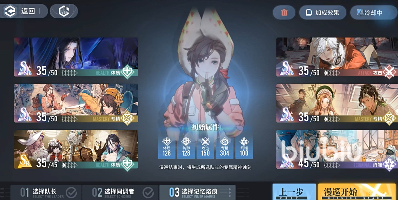 角色的养成方面也相比其他的角色进行了部分的简化,我们只需要选择一个角色作为队长,然后配置好我们的队员队伍,以及类似于团队礼装的记忆烙痕。并通过回廊漫寻这个类肉鸽的玩法结果,来确定它的最终战斗力。之后再用其队伍作为之后主线资源,周回等副本的挑战即可。