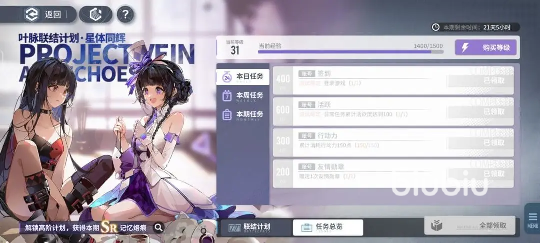 第二个推荐购买的是“叶脉联结计划·星辉同体”,这个礼包当中包括了两种,一种是基础计划,这是默认开启的,另一个是高阶计划,需要68来购买,基础计划里面只要达到相应的等级,就可以领取对应的基础补给,高阶计划需要付费解锁,等级达到之后可以领到对应的进阶奖励。