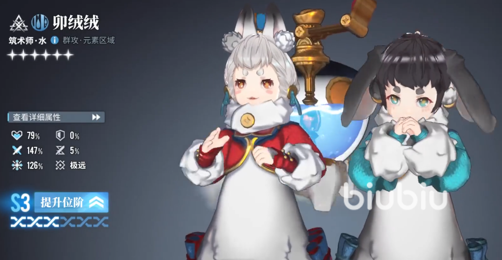 最后还有一位适合当队长的角色,该角色叫做卯绒绒,外观可爱的同时实力也很在线,该角色的队长技可以让他在进入战斗状态时获得蓄水充盈状态,这个状态下释放技能后可以重置该技能,之后他还可以让同为水元素的角色的专精提升,最高可以提升10%,这10%的专精加成对于水元素角色来说提升巨大,有了这个专精提升后,这些水元素角色技能释放的频率会变高,也就是间接性的提高了输出。