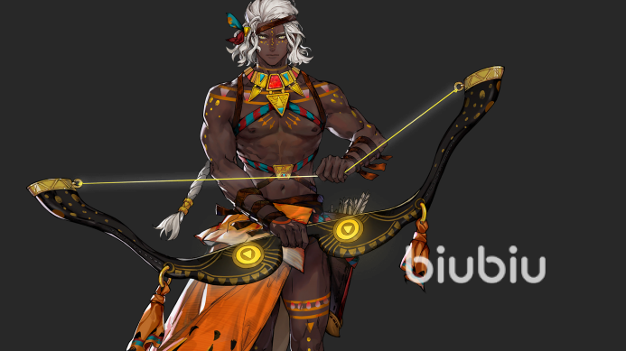 艾摩诃,有点像是游牧部落的成员,手持长弓,一头白色卷发,还系着头巾。在游戏里作为4星雷属的游徒,有一定的范围输出,且在隐匿的加持下生存尚可,可作为火雷、水雷的过渡输出。