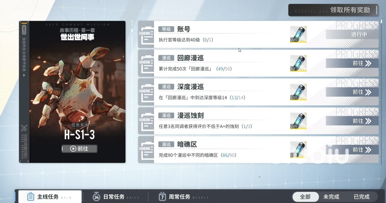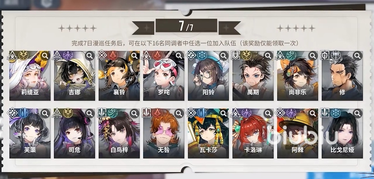 接下来是sr级别的自选,完成14天每日慢巡任务后,可以分别获得五星的同调者和sr的记忆烙痕各一次自选奖励。简单来说,只要在这14天内完成一次又一次的回廊漫巡,即可以解锁获得。加上每条线路完成第三级别的挑战之后,还可以获得一次sr烙痕自选。也就是说,只要我们前期一直打满回廊漫寻,那么最起码,五张sr记忆烙痕以及一个五星同调者绝对板上钉钉。