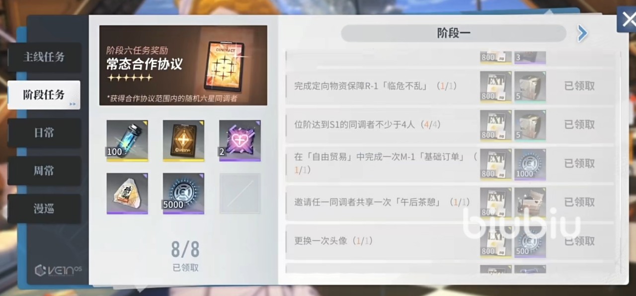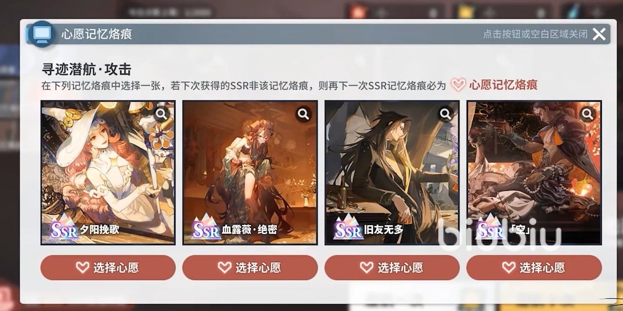 记忆烙痕方面,首先就是每个章节任务完成之后,都可以获得对应主线章节剧情的ssr记忆烙痕,总计四张。另外就是完成阶段任务第十节之后可以在合作协议范围内再获得一张自选,或者首次300抽潜航时,也可以再获得一次自选。