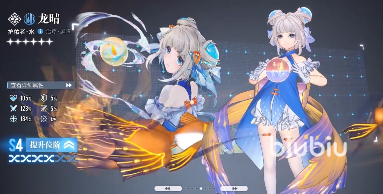 龙晴,是当前版本最万金油的奶妈角色之一。绝佳的护盾效果治疗效果足以拉高团队的生存能力,加上还能阻挡飞行物的大招。可以说,完美兼容了目前几乎所有的队伍组成,可以在任何类型的队伍当中上班,作为团队的补强登场,几乎可以说是前期最完美的开局角色之一。