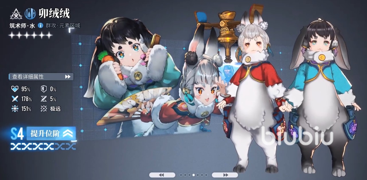 卯绒绒,双兔的话至二测三测时期就已经是版本t0角色了,到了公测来说,仍是非常强大。它是水队雷队的核心所在,兼顾高额输出的同时,还有着尤为不错的控制能力,抽到的话可以直接作为核心主c使用。