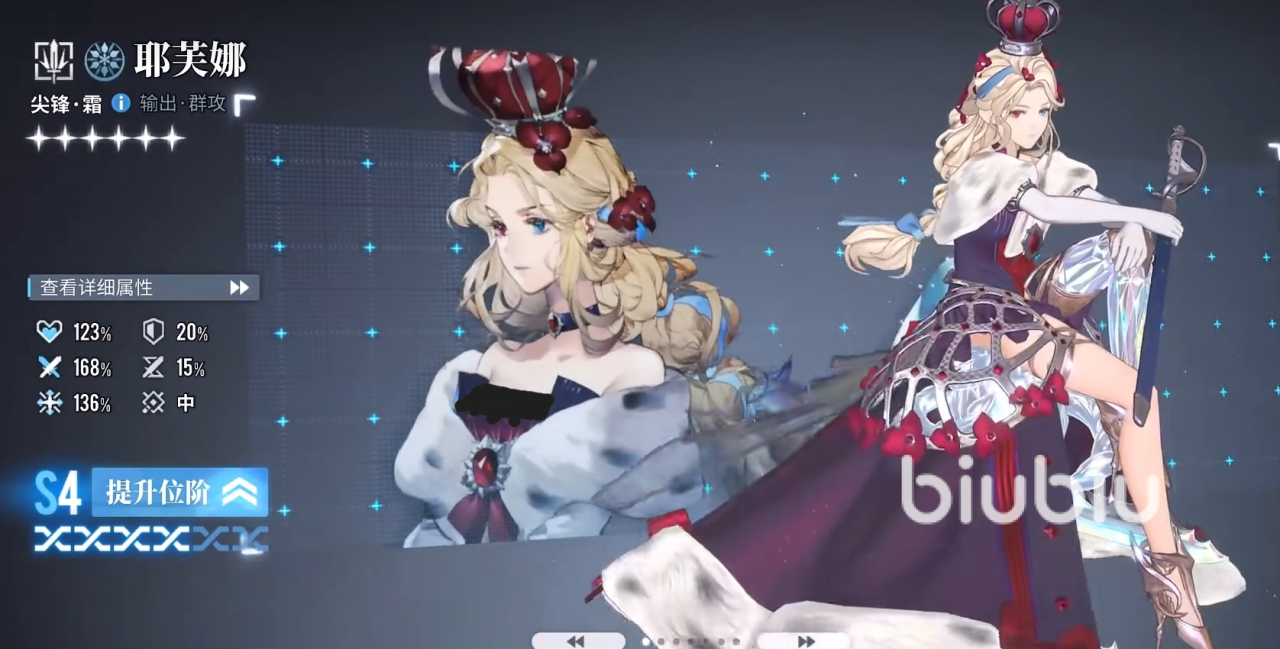 耶芙娜,水系和冰霜系的核心角色。尽管说之前版本强度不高,但在四测之后,得到了官方进一步的加强,提升了斩杀效果以及属性,使得现在的使用场景和应对模式都更加的优秀,也是非常好用的开荒选择。