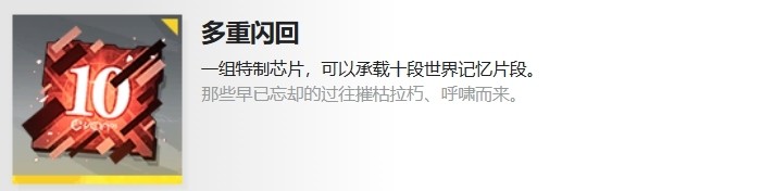 很多玩家们第一次见到多重闪回,想必可能便是在游戏官方福利内容方面看到的。是对于这个特殊的资源,却并不知道它的作用。实际上,多重返回是一组特制的芯片,它的作用是可以承载的十段世界记忆的片段,简单来说就是记忆烙印卡池十连抽。