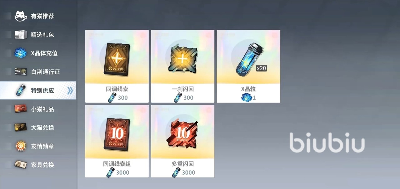 与之相对应的,还有我们的一刹闪回这是我们的记忆烙痕卡池单抽。玩家们可以在游戏中的特别商店耗费3000的晶粒资源,购买多重闪回一刹闪回等等抽卡道具,然后在记忆烙痕卡池当中进行抽卡获取我们的记忆烙痕。
