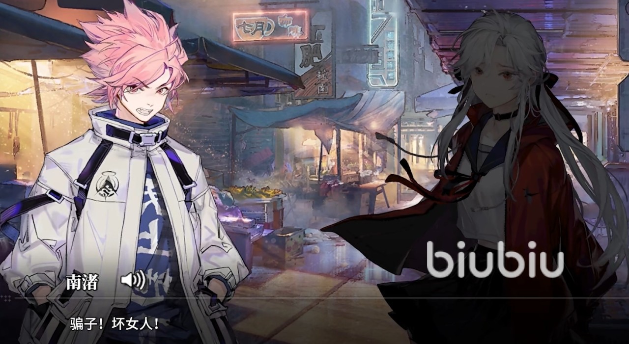 实际上,早在游戏第一章的时候,该角色就已经出场了。第一次与我们见面的时候,是一个以楚楚可怜白毛红瞳美少女的形象。以被袭击者的身份靠近我们,通过语言和身上的伤痕,逐渐让我们卸下对其的警惕,随后又设计了一个大大咧咧,一看就不靠谱的角色质疑她,让我们放下了最后的戒备。