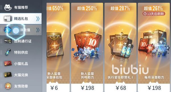 在特别供应中可以购买同调线索,一刹闪回,同调线索组以及多重闪回等道具,有需要的玩家可以来看看。在每日的精选礼包中,有很多性价比比较高的礼包,比如新人监督深潜体验包,它的售价只需六元,是该游戏中最划算的一个充值礼包了,也是氪金玩家必买的一个东西。