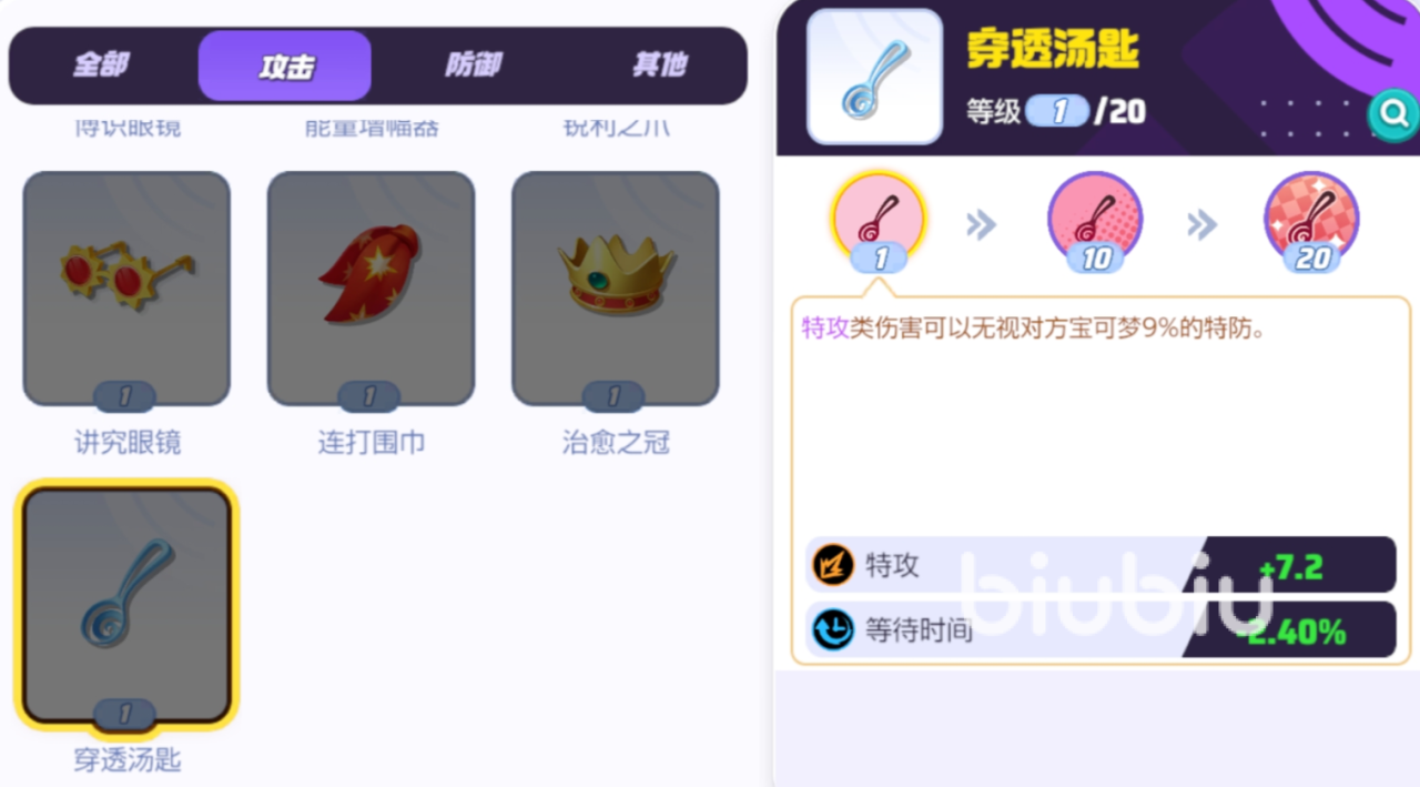 特性“穿透”,自身造成任何伤害时,下一次攻击伤害可以忽略对方一定比例的特防(2.5%),持续4秒,最多可以叠8层,也就是20%的特防。