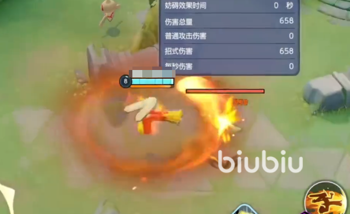 然后看看火焰鸡的技能,他的被动效果是在每次攻击命中目标时叠加一层印记,印记最多可叠加五层。叠满后会对目标造成额外伤害,并为火焰鸡自身回复一定生命值,具备很强的续航与补伤能力。小技能方面,2技能初始为“火花”,可发射小火团,对敌人造成伤害并附带减速效果。该技能在升级后可以进化为“火焰踢”,化身飞踢命中敌人并击退,如果目标撞墙,则会额外附加眩晕效果,是一招集控制与位移于一体的强力技能。