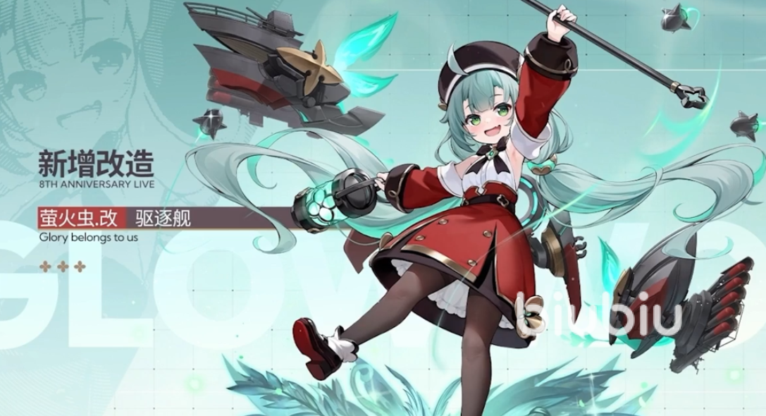 而彩驱“特拉法尔加”则是通过特殊的活动pt兑换获得,也可以理解为送的,基本上最近这两年的碧蓝周年庆都会送一个彩船。然后勇气则是海域活动pt累计达到一定阶段后可以免费领取的紫驱逐。第一弹还有一个萤火虫改造实装。