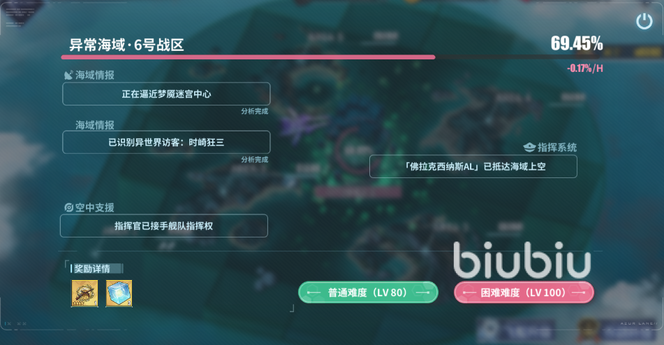 这次联动活动海域是共斗形式的,一共有6个战区,需要逐个压制后才能解锁下一个,每个战斗有普通或者困难难度的。关卡可以单队出击连战,也可以多队连战,可以得到点数、装备外观、物资等等,除了最后的第6战区,其他战区都没有舰船掉落。