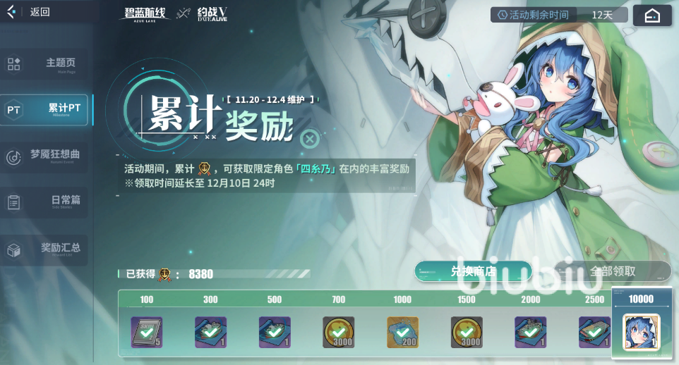 其中十香、折枝、琴里都是只能通过限时建造获取,四糸乃是累计pt点数获取,狂三是先作为npc进入船坞,出击积攒音符达到1000点就可以解锁本体,八舞既可以建造获取也可以第6战区打捞,更可以通过pt点数兑换。