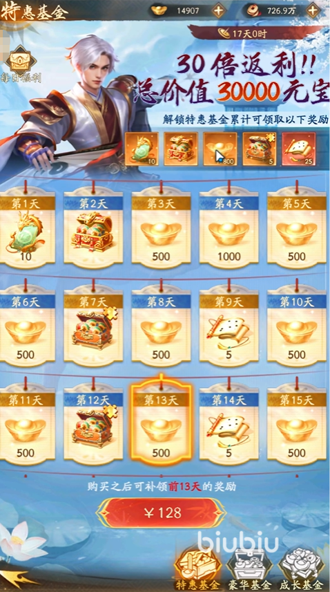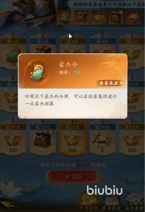 首先基金其实就是一种类似于月卡的玩法,大家要在限定的时间内完成签到就可以将所有奖励都领取完毕,从另外一个角度来看也算是一种变相投资。如果要解锁基金的话就要花费128元,就可以成功开通基金,这样之后每天只需要按时上线签到就可以领取奖励了。