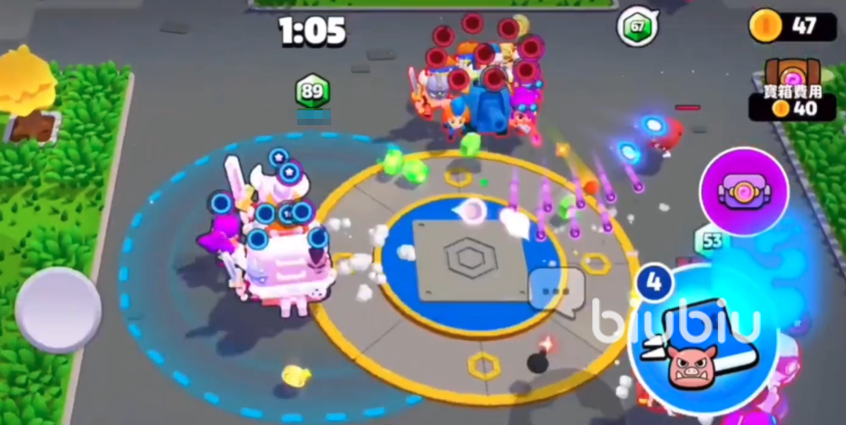 首先当大家开启一场新的比赛时,就有可能出现打地鼠事件。这时候地图周围都会充斥着大量的地鼠机器人,如果我们选择移动的话就不会攻击它!如果选择停下来的话就会攻击地鼠。刚开局的话建议选刺客角色,因为这样灵活性较高。