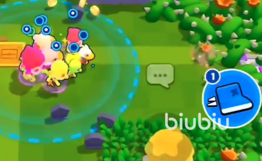 在刚开始落地的时候咱们的出生点附近会有一个蓝色的箱子。这个箱子里面是有着一些金币和一个加速道具,虽然里面的物品很不错但是打破需要一定的时间,这会耽误咱们的发展,所以建议玩家们等获取到2-3个角色之后再来打破这个箱子。