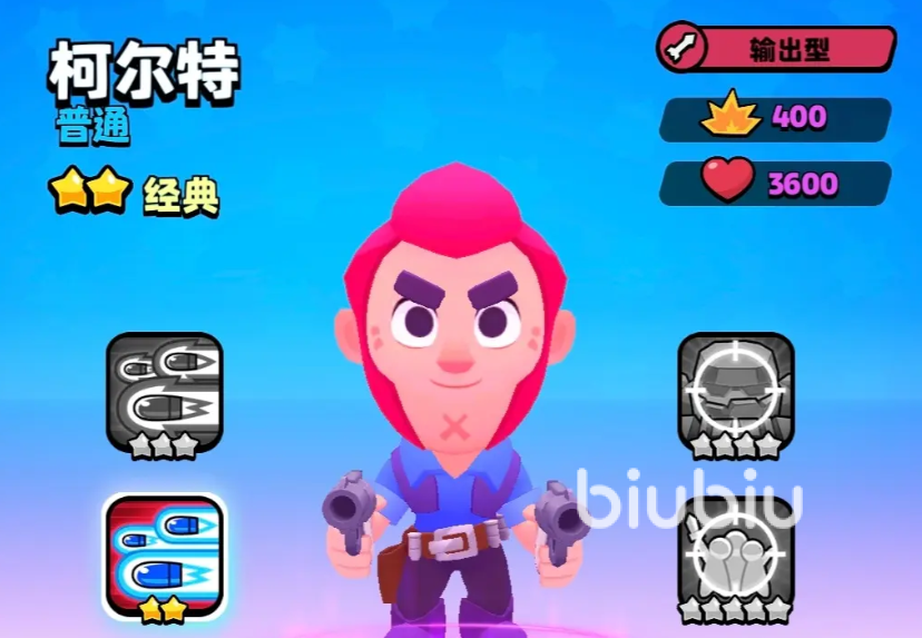 雪莉是个非常全面的角色,有输出、回复和击退,初始技是击倒5个敌人会发射一次超级子弹,子弹会形成200输出值并对目标形成击退,2星会在每次发射后为自己回复一定生命值,3星会让普攻发射出2发子弹,4星会让超级子弹的总伤害提升到400,射击速度提升29,射程提升20%,并且收到攻击的敌人还会被眩晕1秒。