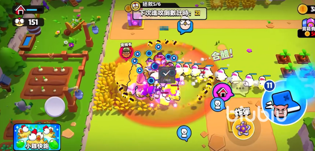 其次,搜寻小鸡与抵御野怪之间存在着紧密的时间关联。玩家必须以最快的速度消灭野怪,这样就能为搜寻小鸡争取到更多的时间。玩家需要时刻权衡,在有限的时间窗口内找到最佳平衡点。并且在野怪攻破鸡舍之前,玩家需要尽可能拯救更多的小鸡。拯救的小鸡越多,最后得到的奖励就越丰富。奖励包括小鸡代币等,可以用于兑换新皮肤等道具,从而提升玩家的游戏体验。