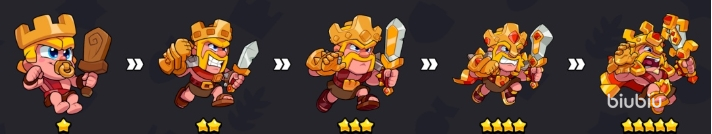 4、野蛮人之王,这也是增益效果较好的英雄,主要是提高队伍中近单位的攻击速度,2星时能每10秒蓄力一次铁拳,240的输出效果,并击退敌人;3星时每隔3秒回复240生命值,4星会提供狂暴法术。