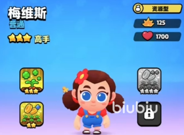 这个角色是中期可以解锁的普通角色。这是一个资源类型角色,基本上资源的流派都会带上这个角色。她虽然是中期获取的角色,但是因为本身的碎片获取比较容易,所以匹配难度不高。她的基础技能是采摘胡萝卜可以获取一定的金币和宝石。2星的技能则是在摘光胡萝卜之后每一个采摘过的土地都会掉落一定的金币和宝石。3星则是每个胡萝卜会为小队回复150点生命值。4星的技能则是强化2星技能,获取到的金币和宝石会更多。