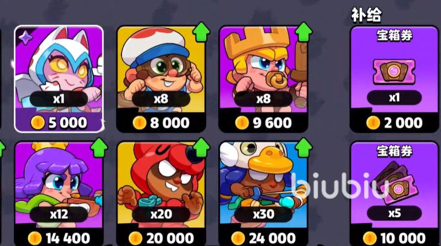 然后角色方面购买的话,肯定是需要先选择珍惜的角色,这些角色的技能和倍率明显是高于普通英雄的,但是价格方面也存在很大的区间,最贵的超级单位价值5000金币,购买的优先级比较高,而普通的角色就800金币,购买的性价比不是很高,一般购买两到三个角色就可以,而稀有以及史诗的角色价值在1000和1200左右,可以多购买几个来弥补战斗力,后期拥有多余的金币可以全部购买掉。