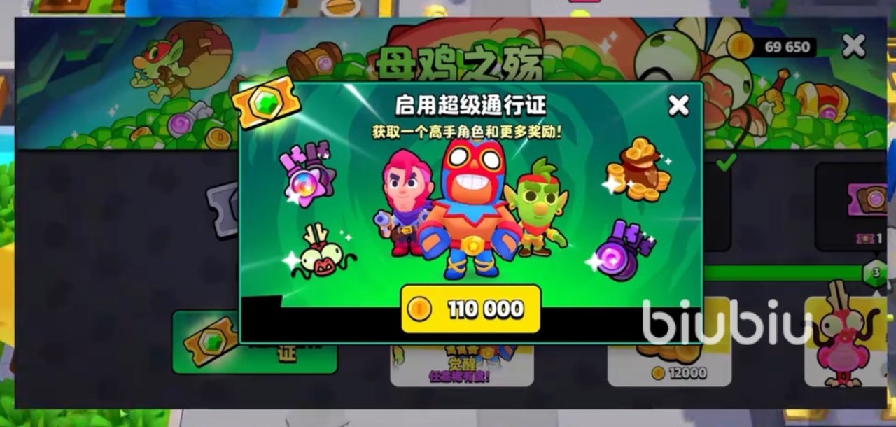 第三步:解锁更多的游戏角色,要知道这些金币是可用于解锁稀有或史诗角色,解锁新角色后还能获得对应的初级角色,进一步丰富角色池。小编是建议大家直接购买【启用超级通行证】,这个需要十一万金币,但是对于玩家来讲还挺好用的,可以马上获取一个高级角色。
