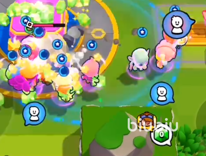 爆裂小队英文是Squad Busters。英文的翻译也是翻译到了精髓上。这款作品也是当下超级细胞这家公司的最新一部作品。这款作品依然是以PVP的玩法为主。玩家们需要在游戏里面收集宝石,只有收集到越多绿宝石,才可以获取到更多的胜率,游戏的获胜条件便是以宝石为主。