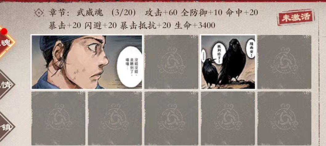 每一个章节绘卷有20个格子,绘卷碎片也形状不同,大小不同,只要我们获取全部碎片,拼成完整的绘卷图案,就可以激活章节属性。另外,绘卷碎片也分为橙色和紫色两种。当然,我们只获得一部分绘卷时候,也可以点击装配绘卷,来获得一些属性加成。不过相比章节的属性加成,只是微乎其微。
