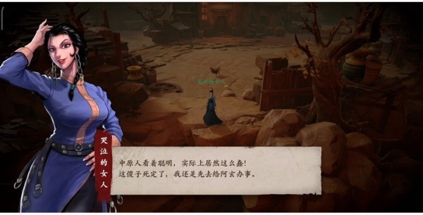 这是第二个奇闻任务,我们和刀马返回客栈的时候,会被客栈老板在门口拦下来,老板因为没钱缴税,说自己是双头蛇,想用自己去换钱。疯疯癫癫的客栈老板被刀马击倒后,被儿子阿来看到了,阿来不喜欢这样的父亲,就跑了。我们需要帮助老板找回阿来。再追踪脚印的时候,遇到一个残疾人,便接到了完璧归赵任务,找到假腿归还残疾人便完成了任务。