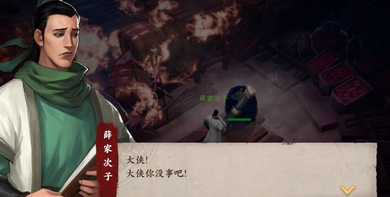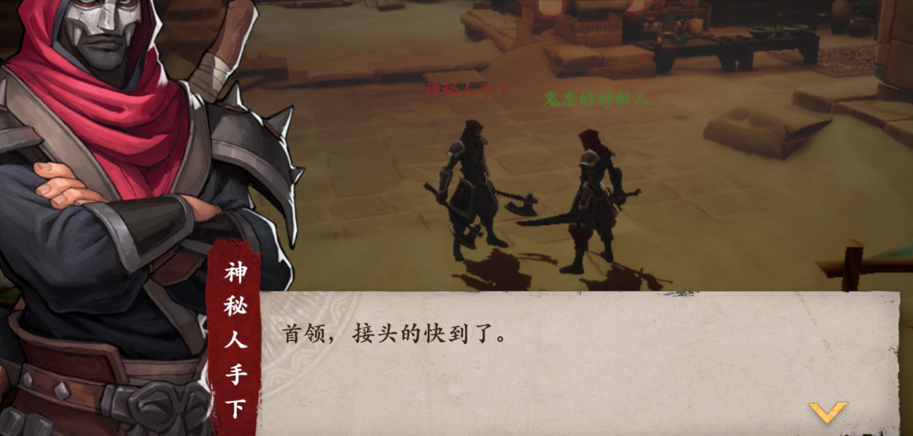 在坐标(134,83)的地方遇到一个乞丐,通过对话触发任务,我们帮乞丐端来了一坛酒,乞丐告诉我们子夜这里会有一个神秘人出没,我们晚上便来到这里蹲点。我们在夜晚发现了神秘人和他的手下,我们根据提示悄悄跟上神秘人,不能被他们发现。跟上神秘人来到一处院子,发现一个商人和神秘人勾结想谋害老莫。我们击败神秘人团伙,把团伙交给老莫,完成任务。