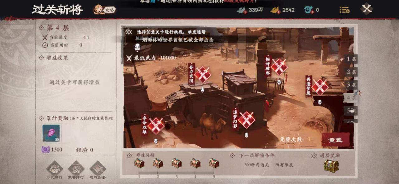 在难度宝箱奖励中可以开启领取大量的强化石,用来强化装备的,以及各种不同的绘卷碎片,罗刹王碎片在第二层过关斩将的奖励中。