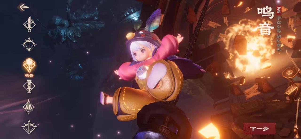 队伍角色建议带一个前排坦克和一个奶妈,在没有碾压武力值的情况下应该是必须要带的,否则没人抗伤害和进行治疗,很容易就被BOSS技能在短时间内击杀。霸钧和鸣音已经占两个位置了,剩下两个在飞羽、长峰、灵华、落羽几个角色中随意选择即可,输出方面影响并不大。在挑战中先由霸钧上前吸引怪物的仇恨值,抗下伤害。后续有鸣音进行状态恢复,当BOSS开启群体AOE技能时鸣音也可以找准时机开启群体护盾抵消伤害。