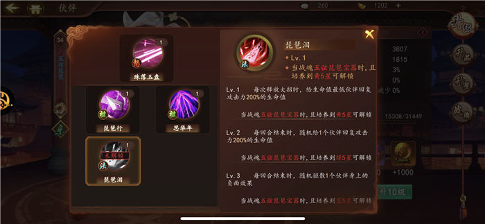 被动计妙法莲花可以提升防御力5%,升级后可以提高15%和30%。