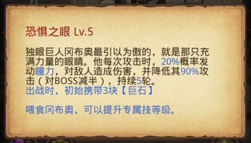 同样的,在技能上,独眼巨人也复原了神话中的设定。唯一的"巨目"不只能对敌人带来伤害,还可以具有强力的震慑用途,减少对手攻击力。佩戴"巨石"这一个设定也和传说中独眼伟人冲破岩层封印而出的故事特别匹配了。