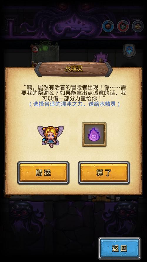 当我们选择喝上一大口圣泉复原体力,选择符合的混沌之力赠给水精灵,将会使你把握6阶水系魔法"精灵赞歌"哦!