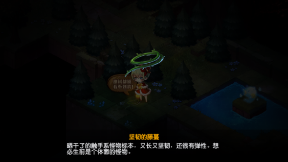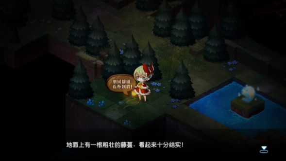康娜离开之后,玩家操控角色进入康娜背后,那里有一条藤蔓,游戏提示这条藤蔓又长又坚韧,还很有弹性,这条藤蔓是进行游戏下一步的重要物品,可以通过藤蔓到暗黑暗森林的下一层。