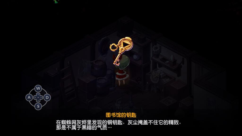 玩家在控制角色进入暗之宫殿之后,需要找到关键的钥匙才能够通过。那么在盔甲中找到地下室钥匙之后,玩家可以使用钥匙开启宫殿的地下室。在进入之后会看到一个厨师在角落中,不一会就被上面的蜘蛛给抓走了,留下一个火把在这里。