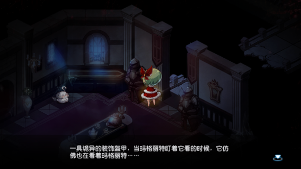 要进入宝石研物语贮藏室,首先玩家需要先进入暗王之宫殿,在暗王之宫殿当中,右上角位置有两个盔甲,靠上的一个盔甲,操纵角色走近之后可以进行查找,盔甲会提示一段剧情,但在查找的时候,盔甲并不会有所反应。