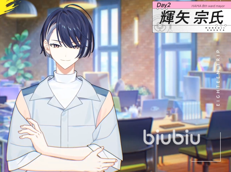 辉矢宗氏目前是滨明日桧高中的二年级学生,除了在学生会担任要职外,还是【Anthroposophy天文部】的部长。年龄为十六岁,是出生在十一月十一日的天蝎座。身高已经达到了172厘米,大家都猜测他成年后会成为外貌更加出众的明星。同时辉矢宗氏的另一重身份是HAMA8区的区长,每天都在为了成为宇航员而刻苦修炼。和游戏中其他几名角色一起,组成了名为Day2的队伍。他的姓氏【辉矢】的发音与【辉夜】类似,也就是竹取物语之中辉夜姬的姓氏,名字则来源于日本镰仓时代末期武将大馆【宗氏】,大概这也是他人物设定的彩蛋之一。