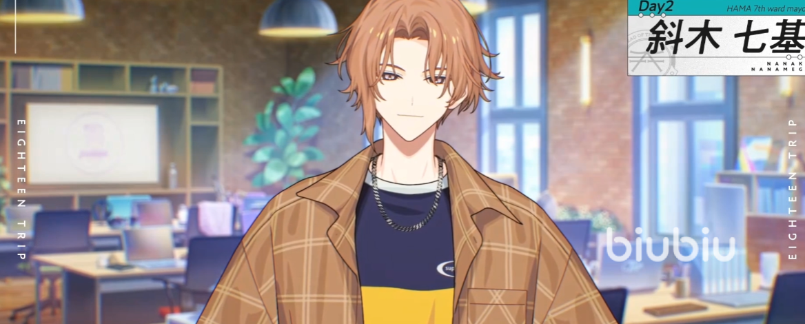为了不然自己太过轻易的对他人动心, 斜木七基才会选择做一个“真空人”,避免与他人产生太过深入的接触。可能是因为斜木七基将自己的单相思体质隐藏的太好,所以即使作为学校中非常耀眼的人物,同学们都没能够发现斜木七基真实的一面。斜木七基出生于非常纯粹的音乐世家,本人也在耳濡目染下从幼年就开始尝试进行作曲,作曲也自然而然地成为了斜木七基的兴趣爱好。现在的他不仅是匿名将自己作品在网上发表的蒙面音乐人,还是学校里轻音部的部长,在学生群体里有着非常不错的号召力。玩家们和斜木七基相识后,会发现他其实也是HAMA7区的区长,玩家们在开发HAMA7区的旅游业时,需要和斜木七基一起并肩作战。