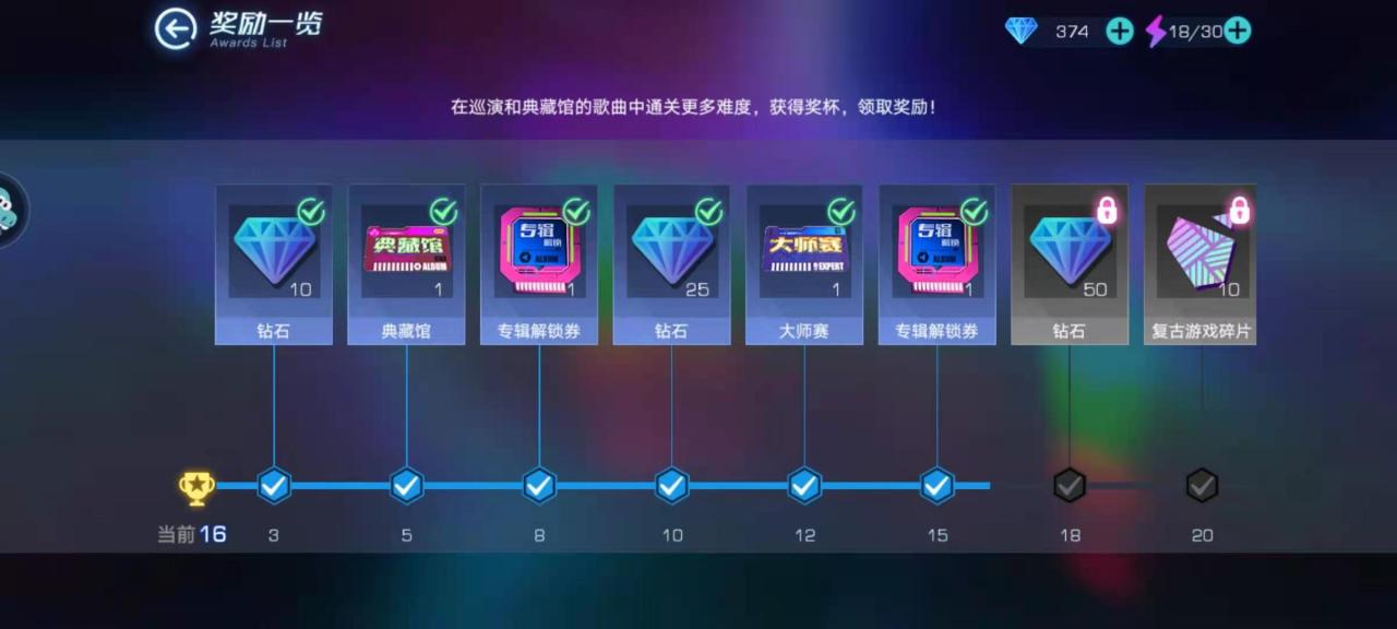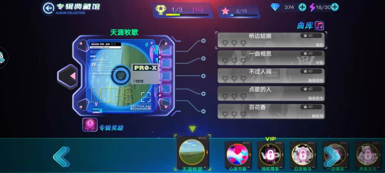 想要解锁曲库的前提是得解锁典藏款,典藏馆只需要五个奖杯就能解锁,任意新歌都是能获得奖杯的哦。解锁完典藏馆后我们进入,然后在所有专辑的右上边都有曲库的进入按钮,进去后我们就能看到目前游戏内的所有歌曲啦,无论是你解锁的和没解锁的都能看到。在曲库中搜索也极其简单,直接在曲库上方就有“输入关键字进行搜索”,只需要打歌名内有的字就能直接搜索到,无论是解锁没解锁都能搜索到。