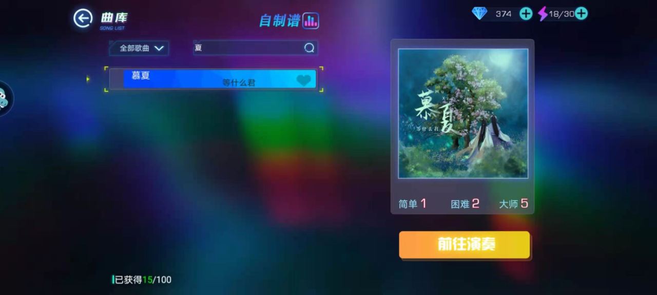 不休的音符在公告栏是说明过里面的歌曲都已经得到了正版版权,在曲库中我们能看到游戏内一共有100首歌曲可以任我们游玩,甚至还有自制谱选项,同样无论是游戏曲库,还是自制曲库都可以进行直接搜索来找到我们想要的那个歌曲。